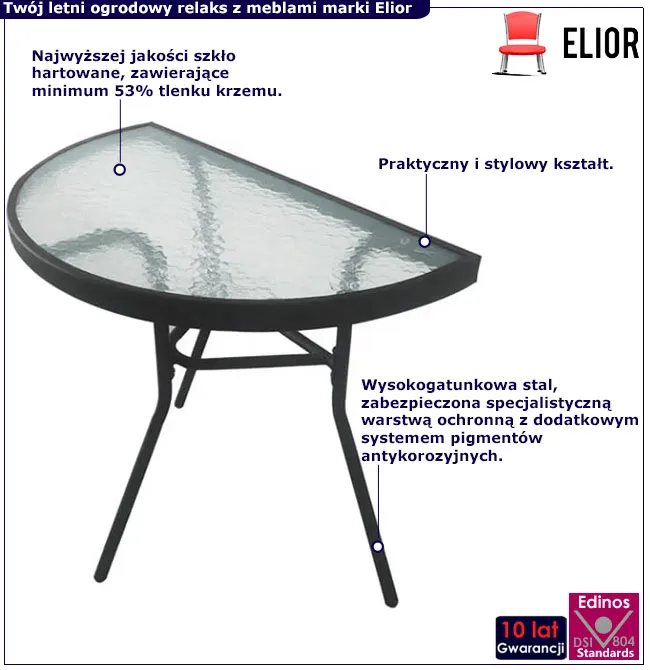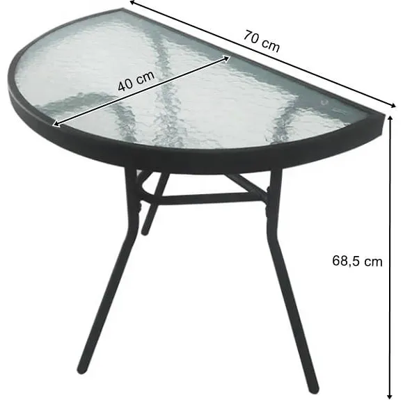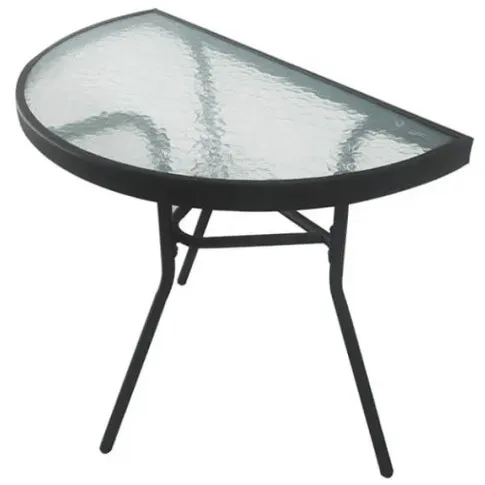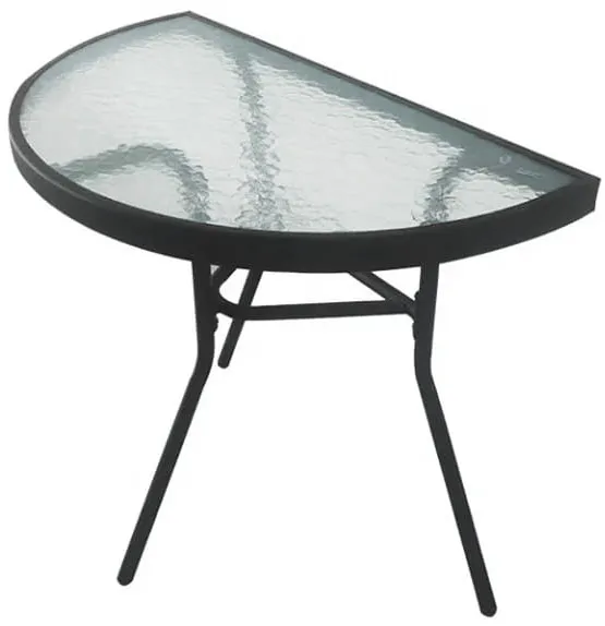 Czarny półokrągły stolik do ogrodu ze szklanym blatem - Vedo