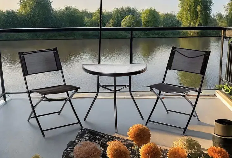 Taras z wykorzystsaniem stolika ogrodowego szklanego Vedo