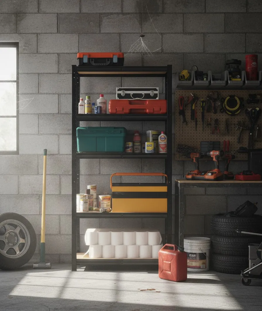 Metalowy stelaż i półki są dobrze wykonane no i wg mniemateriał odporny jest na uszkodzenia i korozję co w pomieszczeniu gospodarczym jest ogromnym plusem