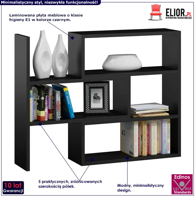 czarne regały na książki w sklepie Edinos.pl. Stwórz swój praktyczny zestaw mebli.