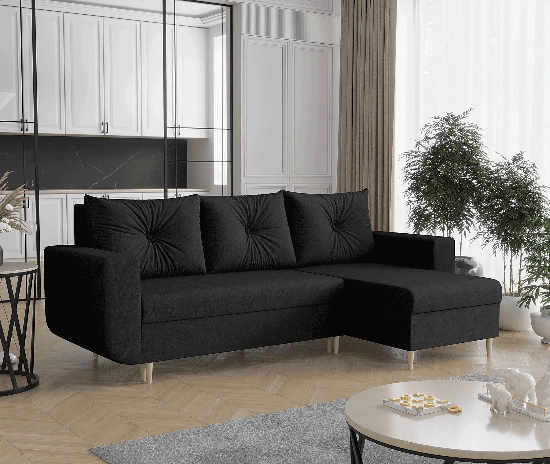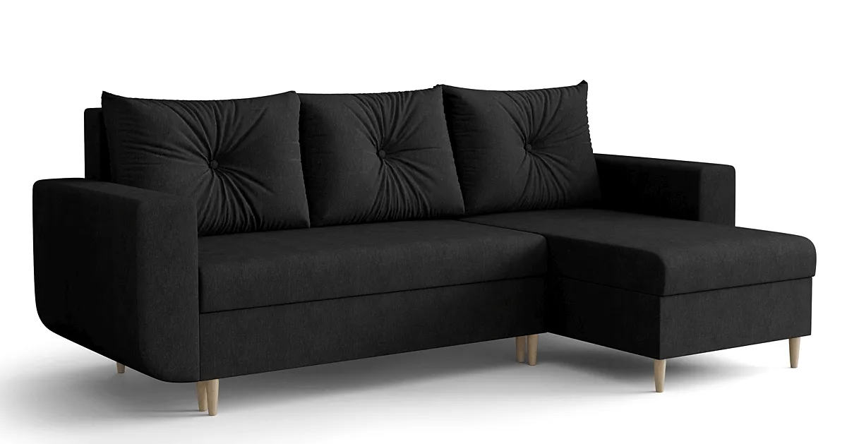 Czarny rozkładany narożnik z funkcją spania - Neravo 4X
