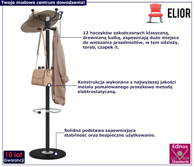 Dotyczy: Klasyczny biały wieszak stojący na ubrania - Caden 3X
