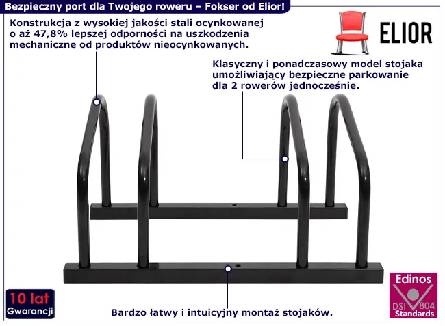 • Kolor: Czarny. Kliknij w link i sprawdź także inne stojaki rowerowe w sklepie Edinos.pl. Stwórz swóją praktyczną przestrzeń.