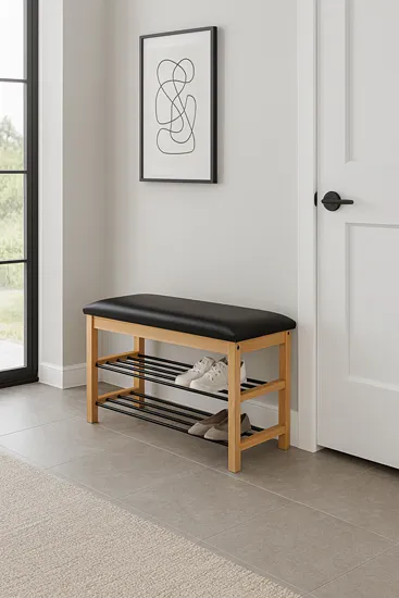 Największe utrapienie korytarza? Stojące w każdym kącie buty, zaburzające ład i harmonię wnętrza. Teoretycznie można by schować je w szafie, ale które wybrać, skoro wszystkie są potrzebne? Lepiej mieć je w zasięgu ręki, niż przy kolejnym wyjściu znów godzinami szukać ich w szafie. Ivor to wspaniałe rozwiązanie zapewniające nie tylko porządek, ale i komfort. Połączenie ciepłej podstawy w kolorze naturalnego drewna oraz zdecydowanej czerni tworzy niezwykle spójną całość o przyjaznym charakterze. Dwie obszerne półki zmieszczą bez problemu wszystkie najpotrzebniejsze buty dyskretnie ukrywając je pod komfortowym siedziskiem, które pozwoli Ci wygodnie przygotować się do wyjścia z domu. Pozostałe miejsce pozwoli komfortowo odstawić obuwie Twoich gości tak, aby nie zastawiało zbędnie podłogi narażając na potknięcie lub uszkodzenie go. Stojak na buty Ivor dzięki nienachalnej formie nie przytłoczy aranżacji wkomponowując się we wnętrze niczym kameleon. Zgrabna budowa stojaka sprawia, że nie zajmuje on dużo miejsca dzięki czemu zachowasz we wnętrzu ład i harmonię. Siedzisko Ivor charakteryzuje się niesamowitą miękkością i łatwością w utrzymaniu czystości co jest niesamowicie ważnym aspektem podczas wyboru odpowiedniego mebla. Ivor odnajdzie się bez problemu w aranżacjach w stylu skandynawskim, minimalistycznym, klasycznym czy też nowoczesnym. Jego potencjał wykorzystać można zarówno w przestrzeniach domowych jak i komercyjnych takich jak kręgielnie lub salony pedicure. Nasz doskonały stojak na obuwie Ivor zapewni Ci wspaniały design i komfort na najwyższym poziomie!