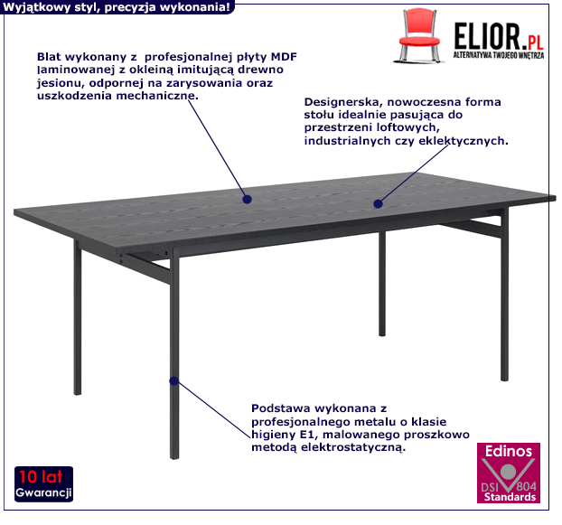 - Modna kolorystyka: czarny. Kliknij w link i sprawdź także inne inne loftowe stoły w sklepie Edinos.pl. Stwórz swój praktyczny zestaw mebli.