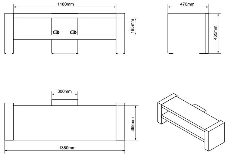 - Wymiary całkowite: długość: 47 cm, szerokość: 138 cm, wysokość: 46,5 cm.