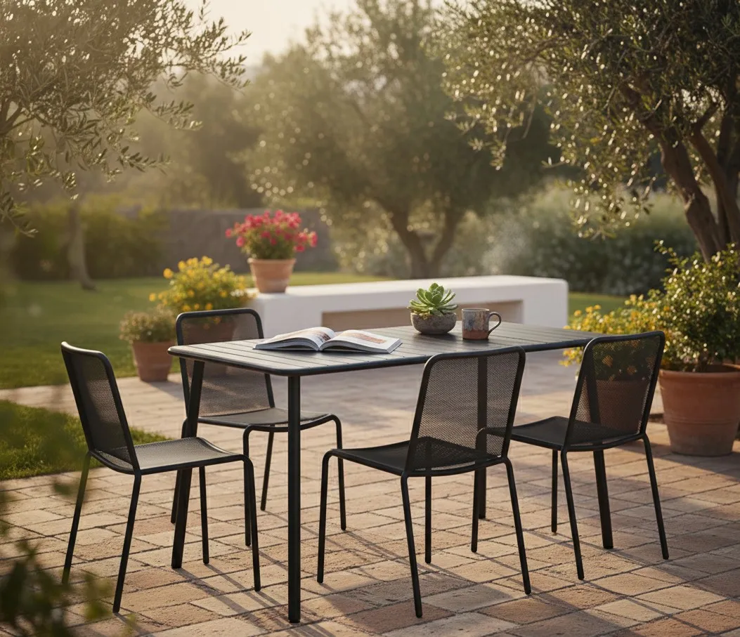 Dotyczy: Czarny kwadratowy stół ogrodowy z metalu - Delros 3X