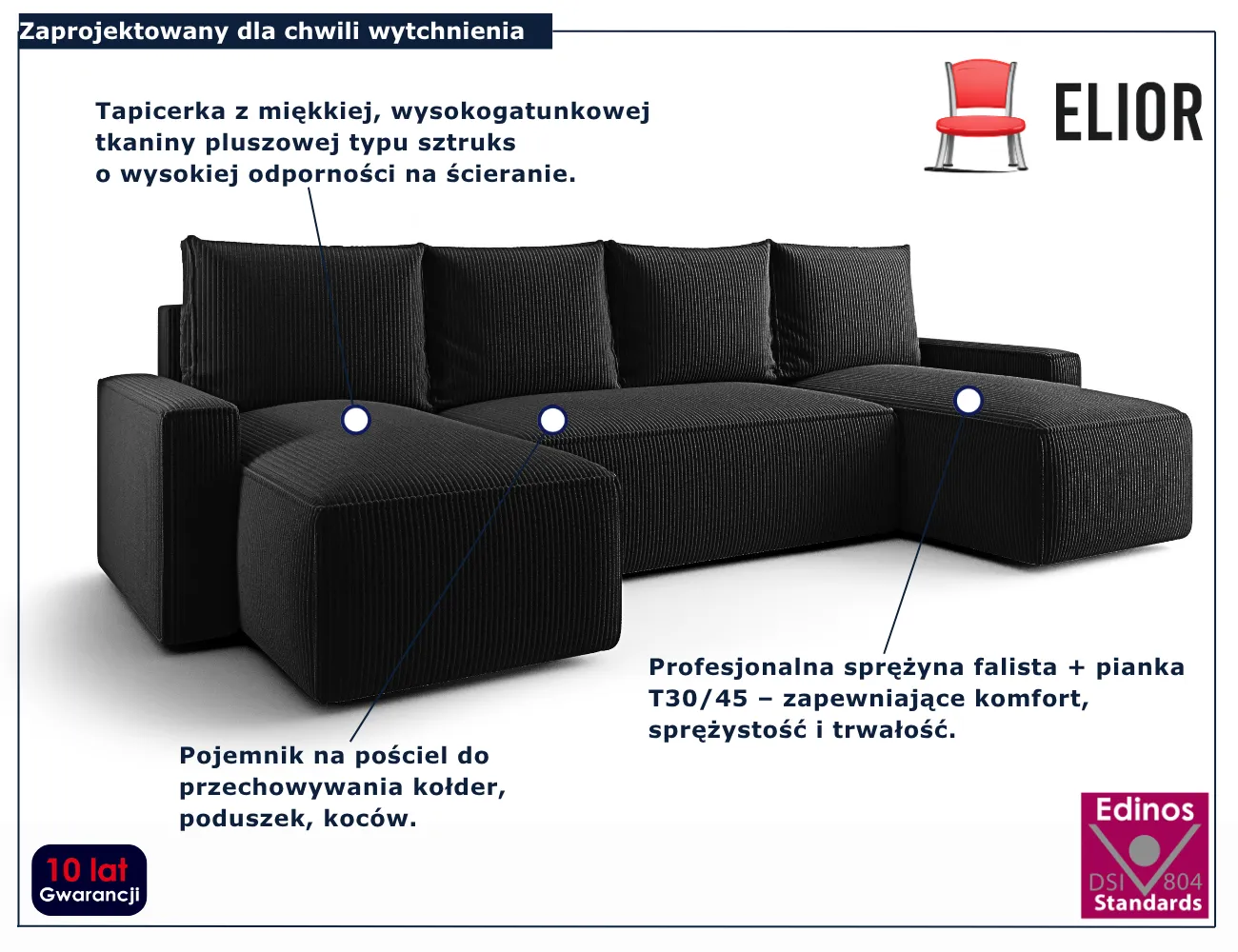 Dotyczy: Beżowy sztruksowy narożnik rozkładany z pojemnikiem - Meltix 4X