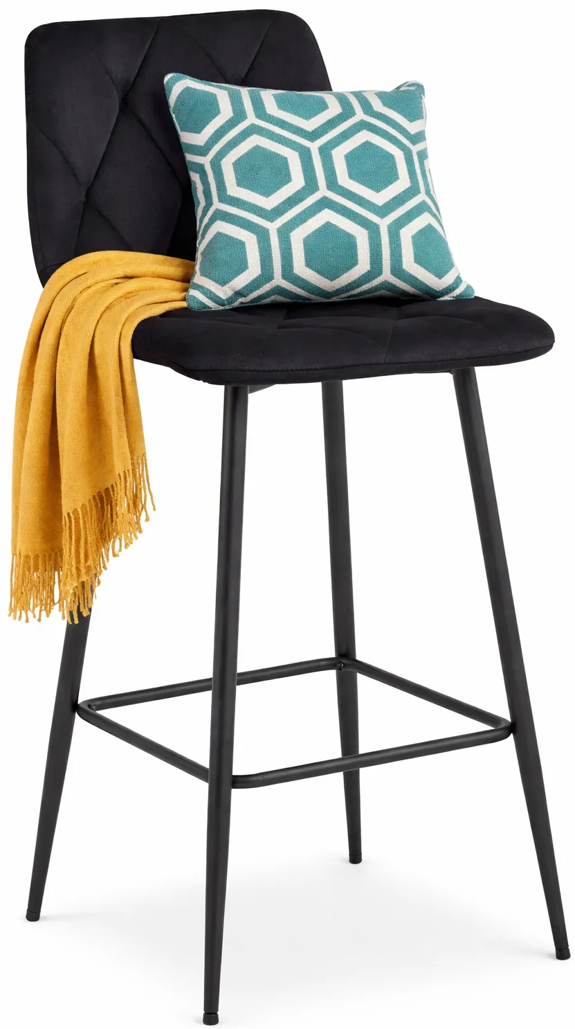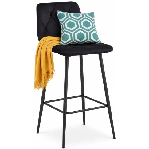 Czarny welurowy hoker metalowy z oparciem - Elens