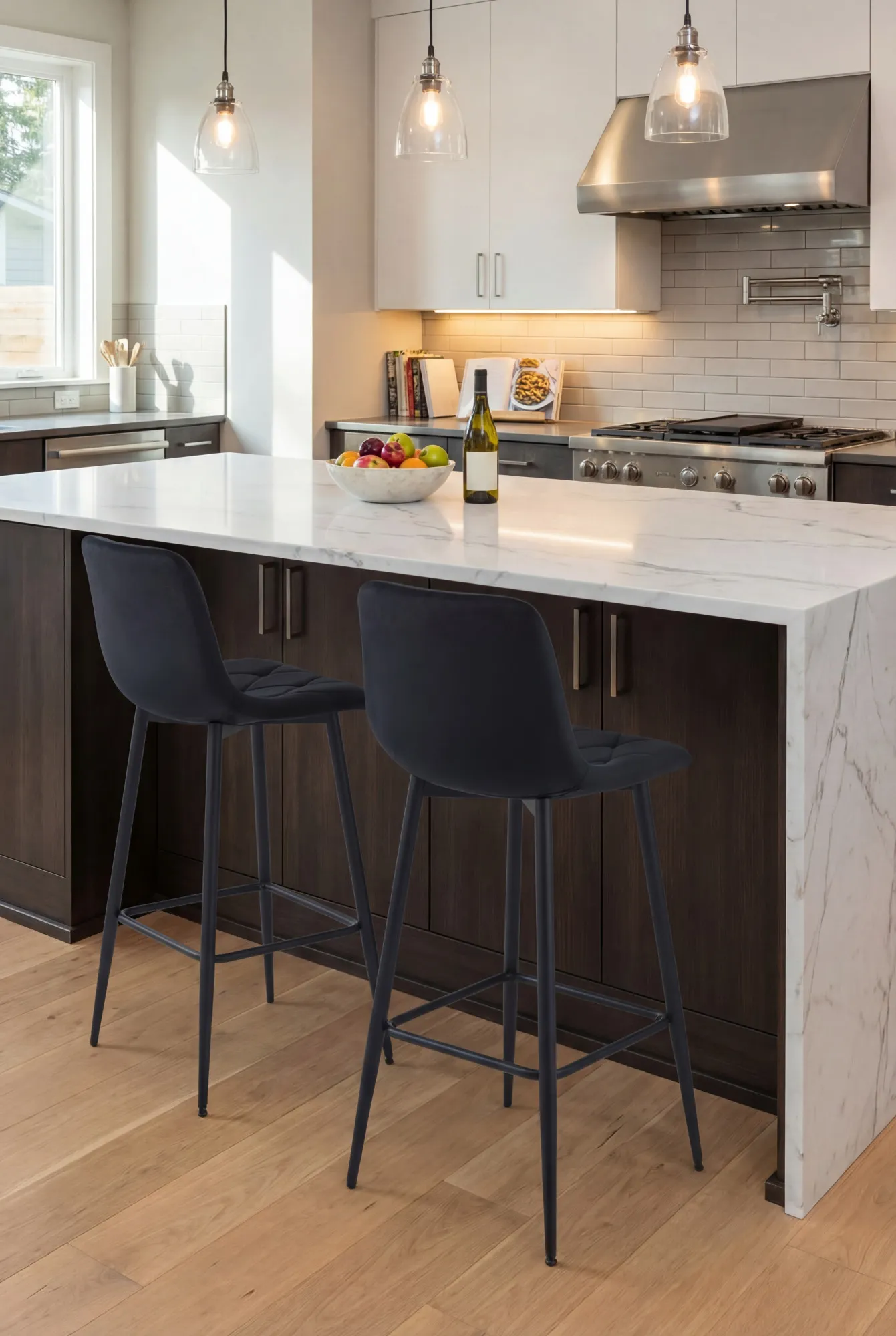 • Ergonomiczne oparcie: zaprojektowane z myślą o wsparciu i wygodzie, idealne na długie wieczory przy barze czy kuchennym blacie.