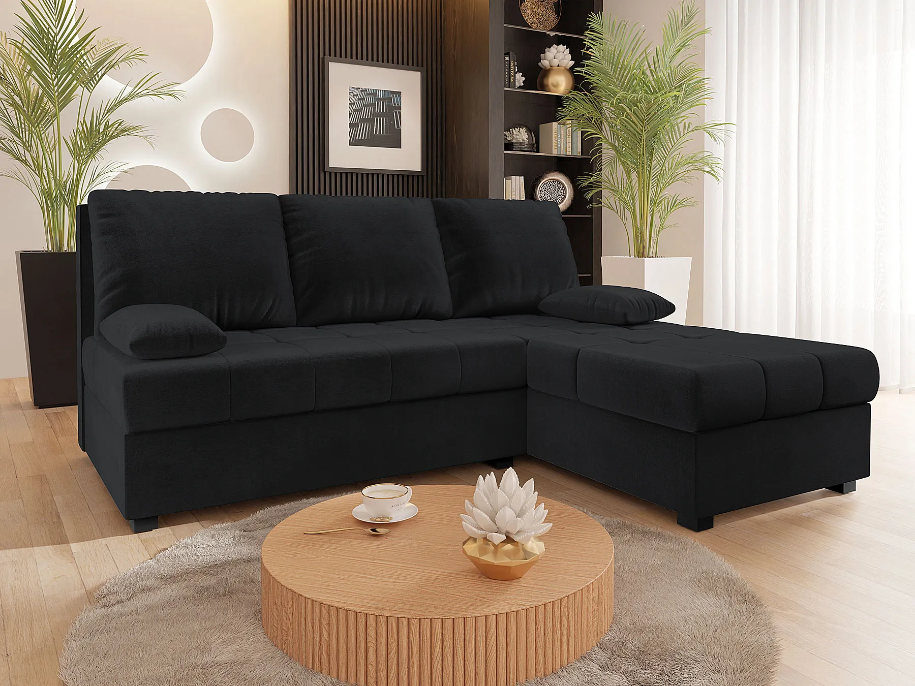 Czarny welurowy narożnik rozkładany - Montiero
