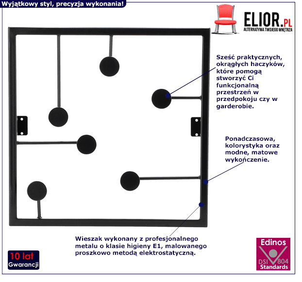 - Modna kolorystyka: czarny. Kliknij w link i sprawdź także inne wieszaki do przedpokoju w sklepie Edinos.pl. Stwórz swój praktyczny zestaw mebli.