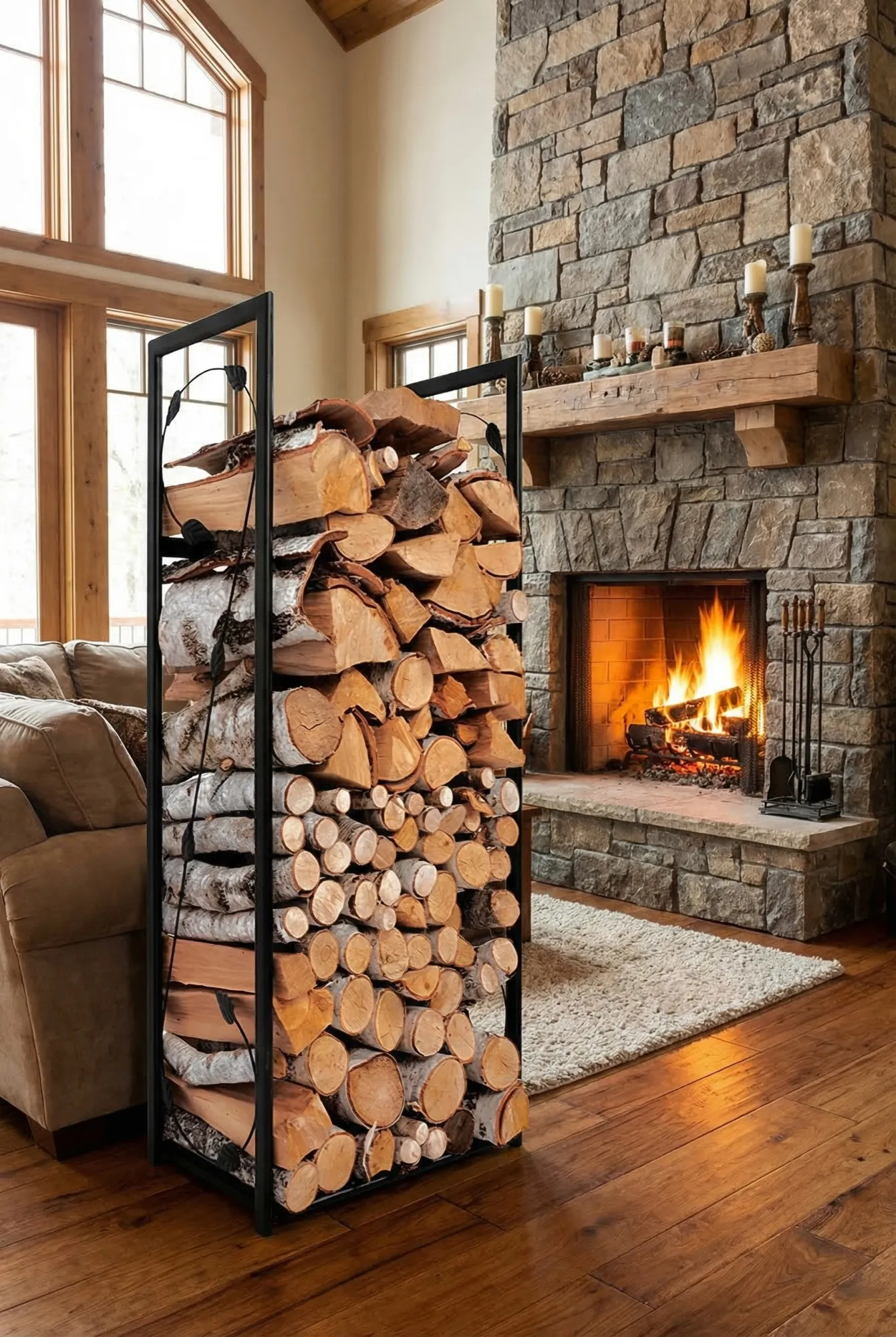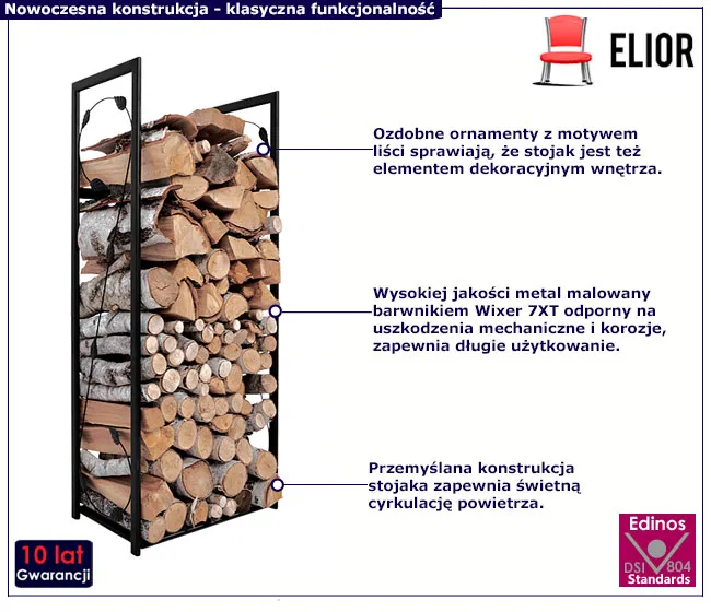 • funkcjonalność: stojak utrzyma drewno w idealnym porządku, wprowadzając do wnętrza przytulną i ciepłą atmosferę