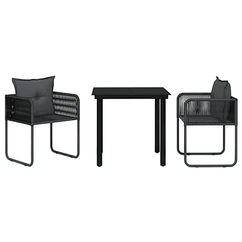 Zestaw prezentuje się bardzo estetycznie. Czarny kolor pasuje do każdego otoczenia. Krzesła wygodne, a stół stabilny. Idealny komplet do ogrodu lub na taras. Wszystko zgodne z opisem.