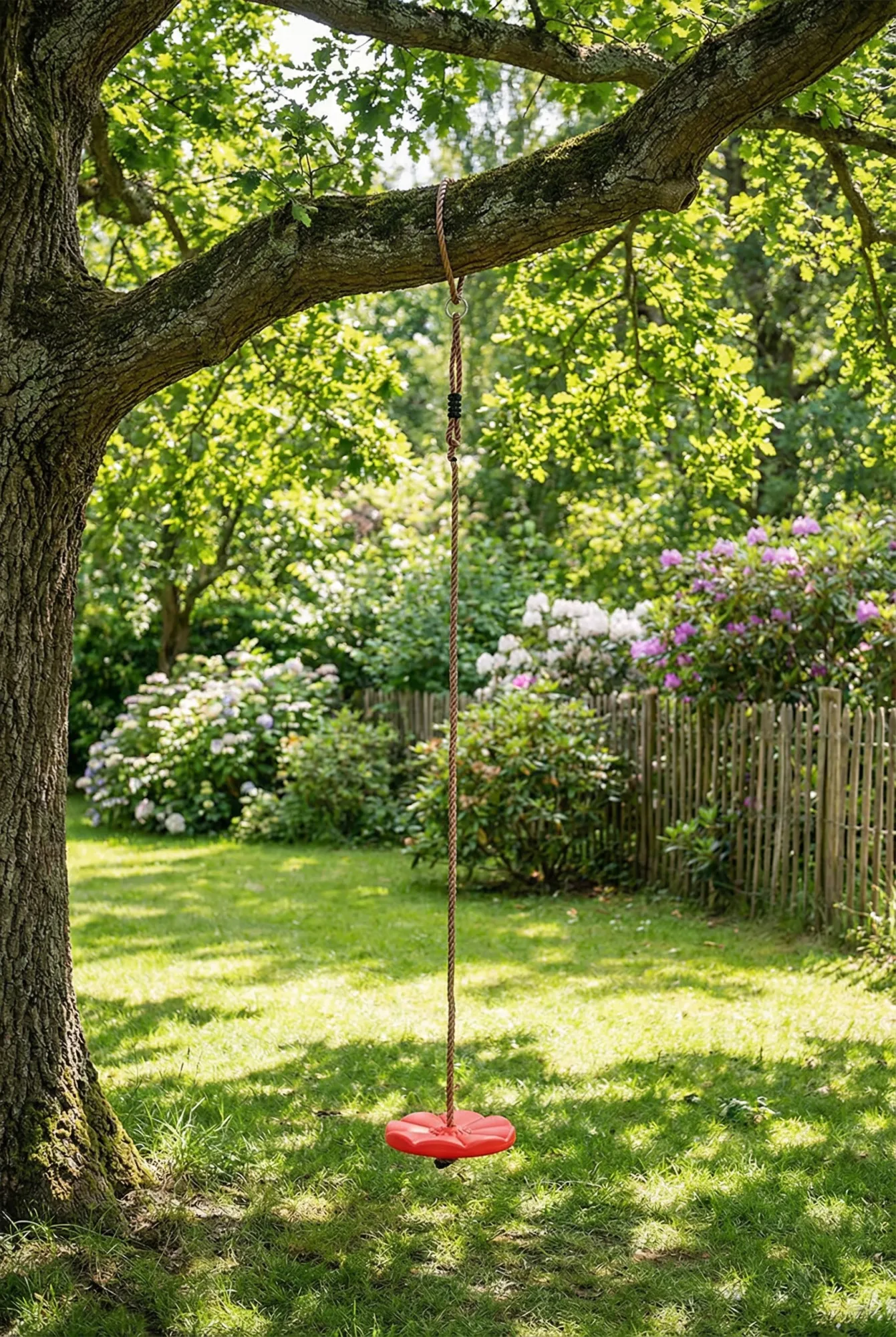 • Metalowe kółko montażowe – ułatwia szybkie i stabilne przymocowanie huśtawki do drzewa lub stelaża.