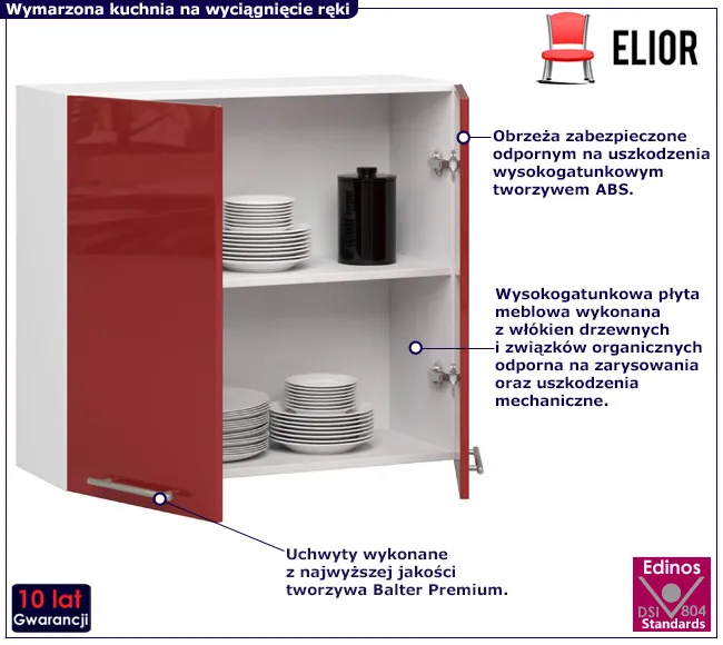 • Kolor: korpus: biały, fronty: czarwony połysk. W naszej ofercie posiadamy także inne szafki kuchenne. Kliknij i stwórz swój wyjątkowy zestaw mebli.