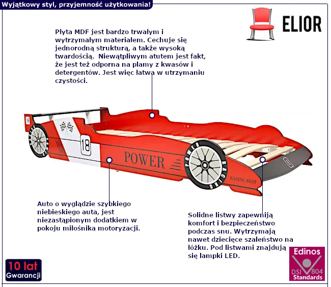 Dotyczy: Niebieskie łóżko dziecięce auto z lampkami LED 90x200 - Dina