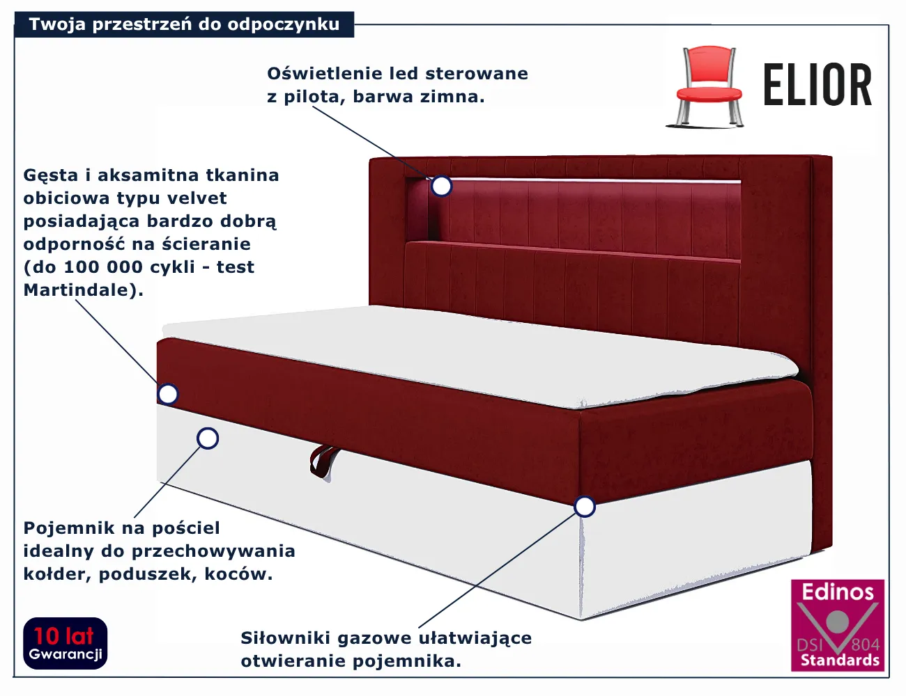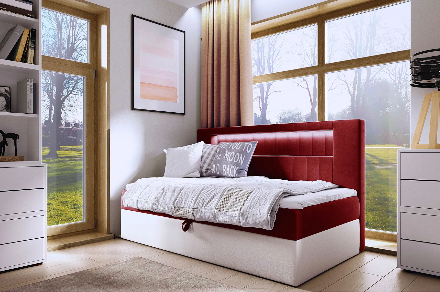 Czerwone łóżko kontynentalne z pojemnikiem 3 rozmiary - Lorvani