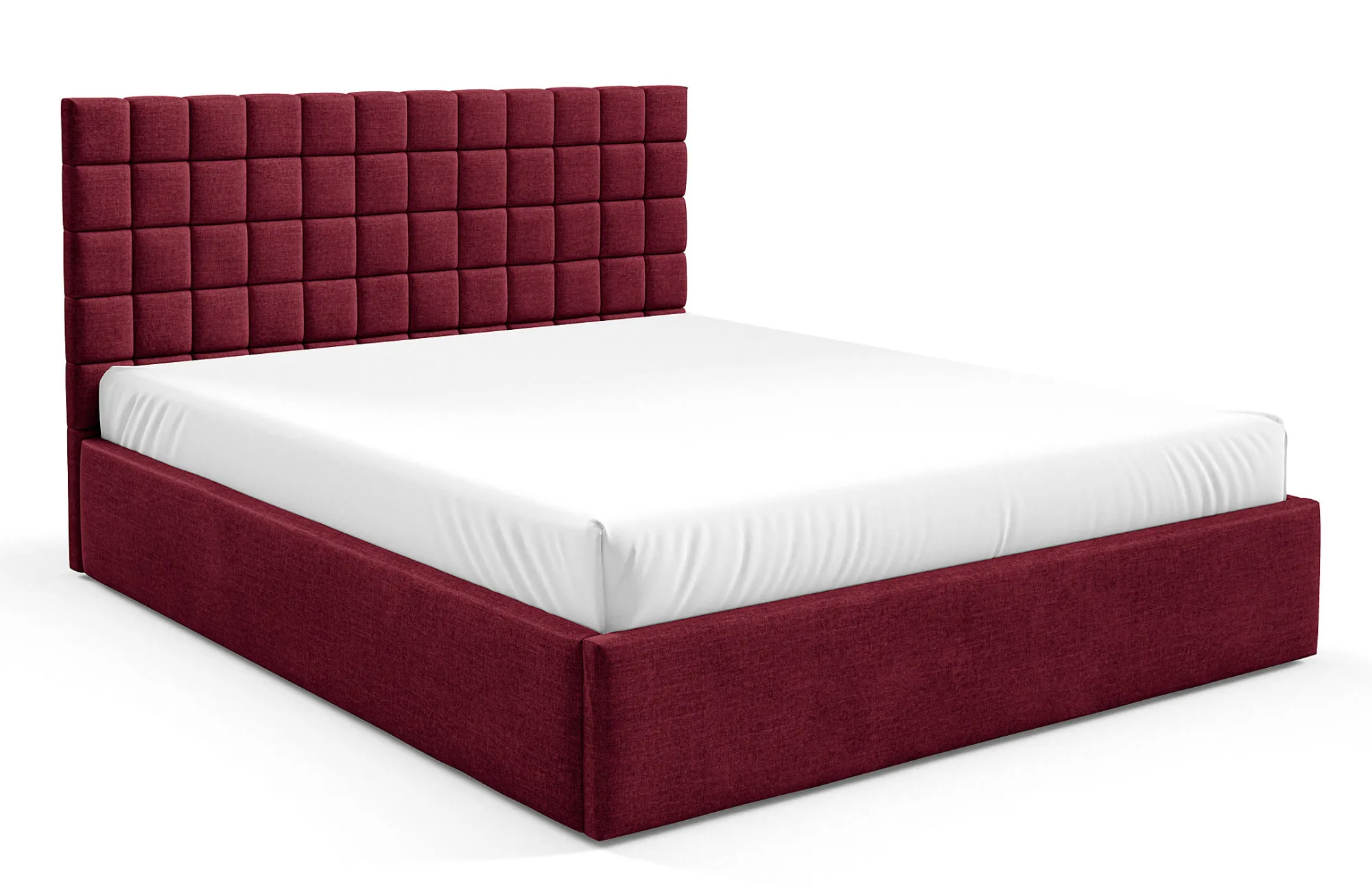 Czerwone tapicerowane łóżko z pojemnikiem Merenzo