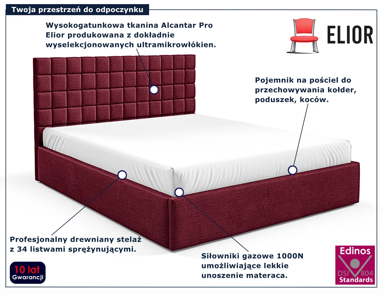 Czerwone łóżko z pikowanym zagłówkiem 3 rozmiary - Merenzo