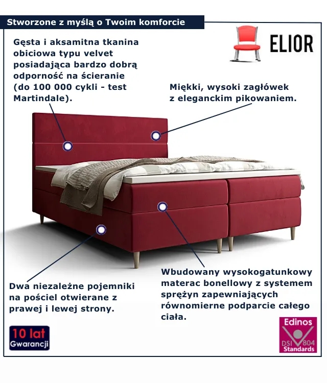 Łóżko kontynentalne w kolorze czerwonym Solvion