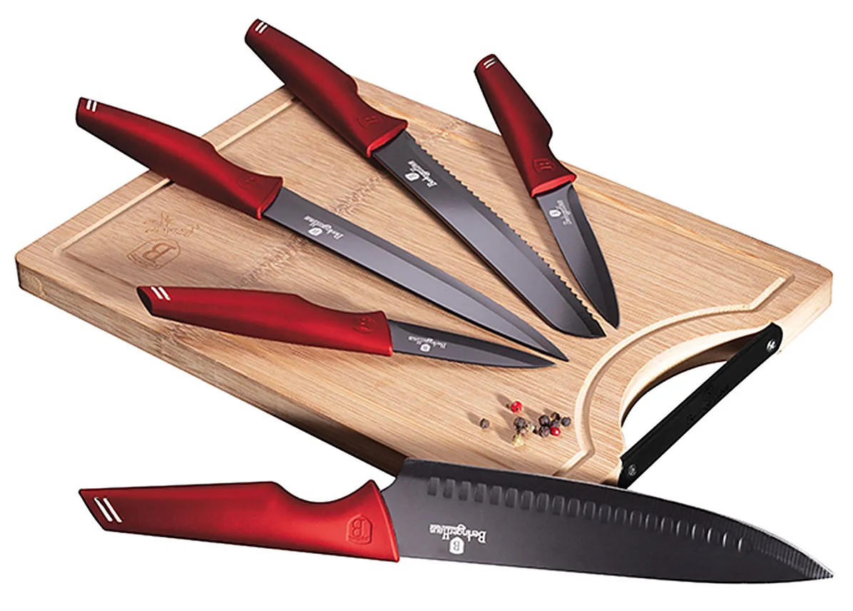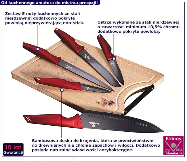 Dotyczy: Elegancji zestaw noży stalowych z deską różowe złoto - Prado 3X