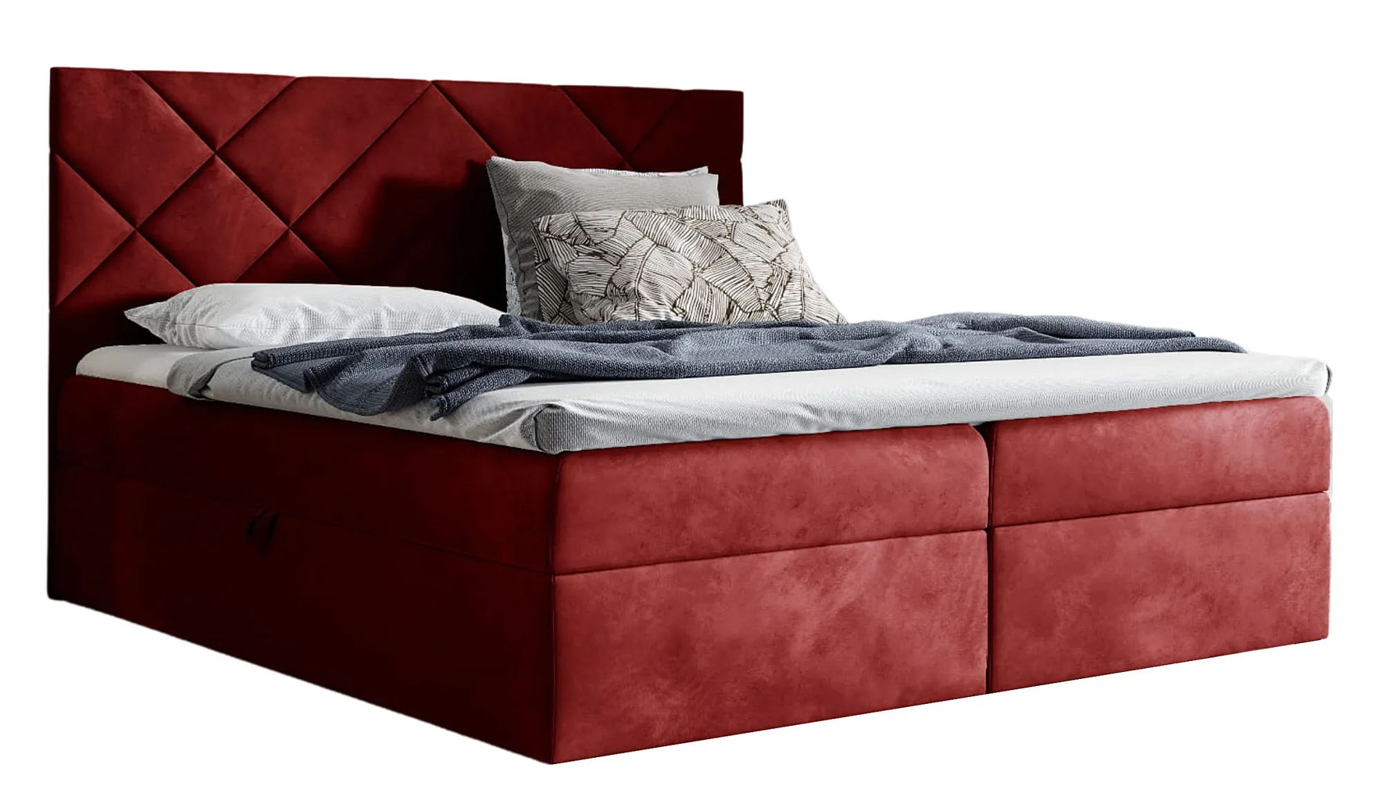 Czerwone tapicerowane łóżko kontynentalne 5 rozmiarów - Ressari