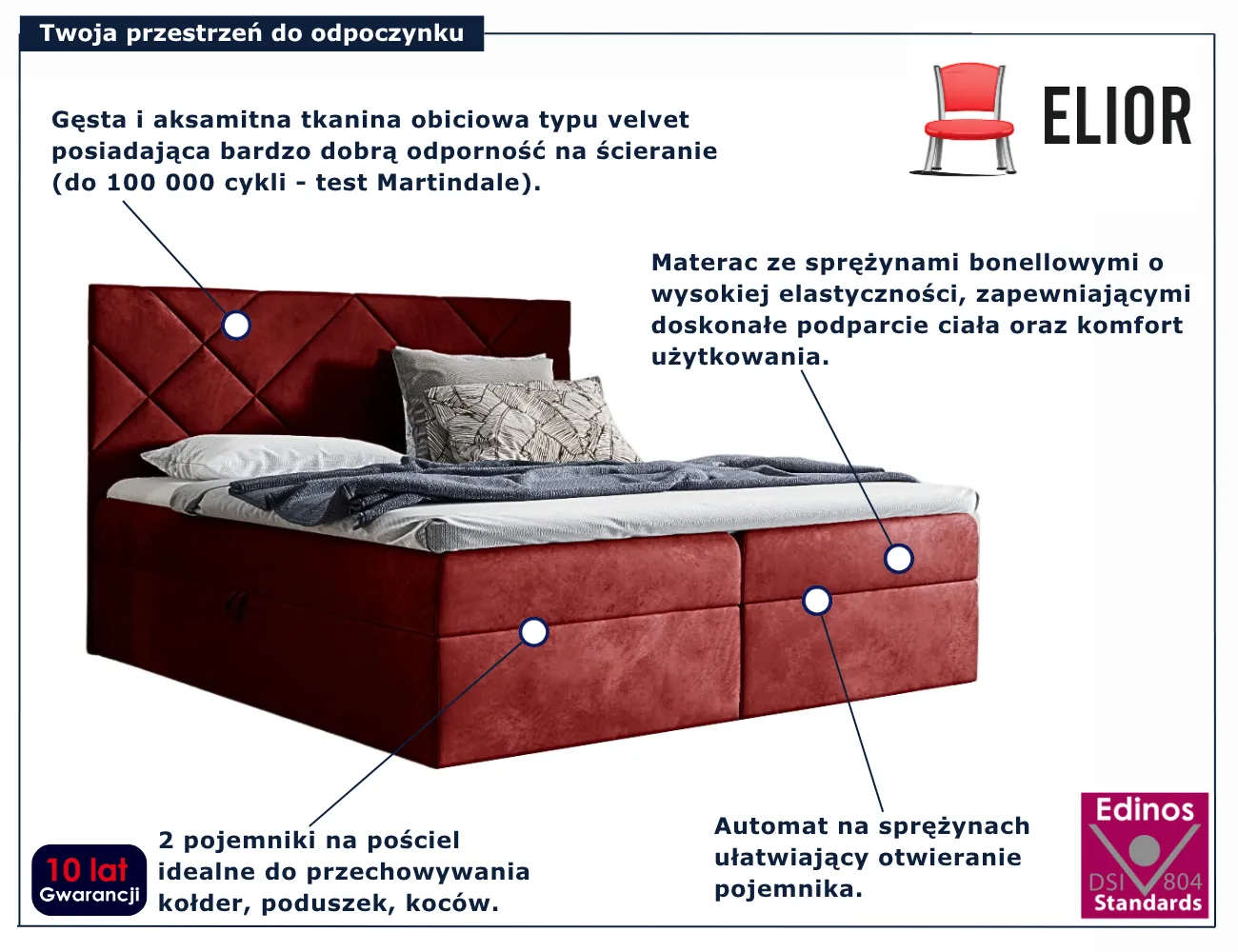 Czerwone tapicerowane łóżko kontynentalne Ressari