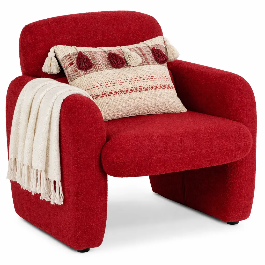 Aranżacja z czerwonym fotelem boucle Etilion 5X