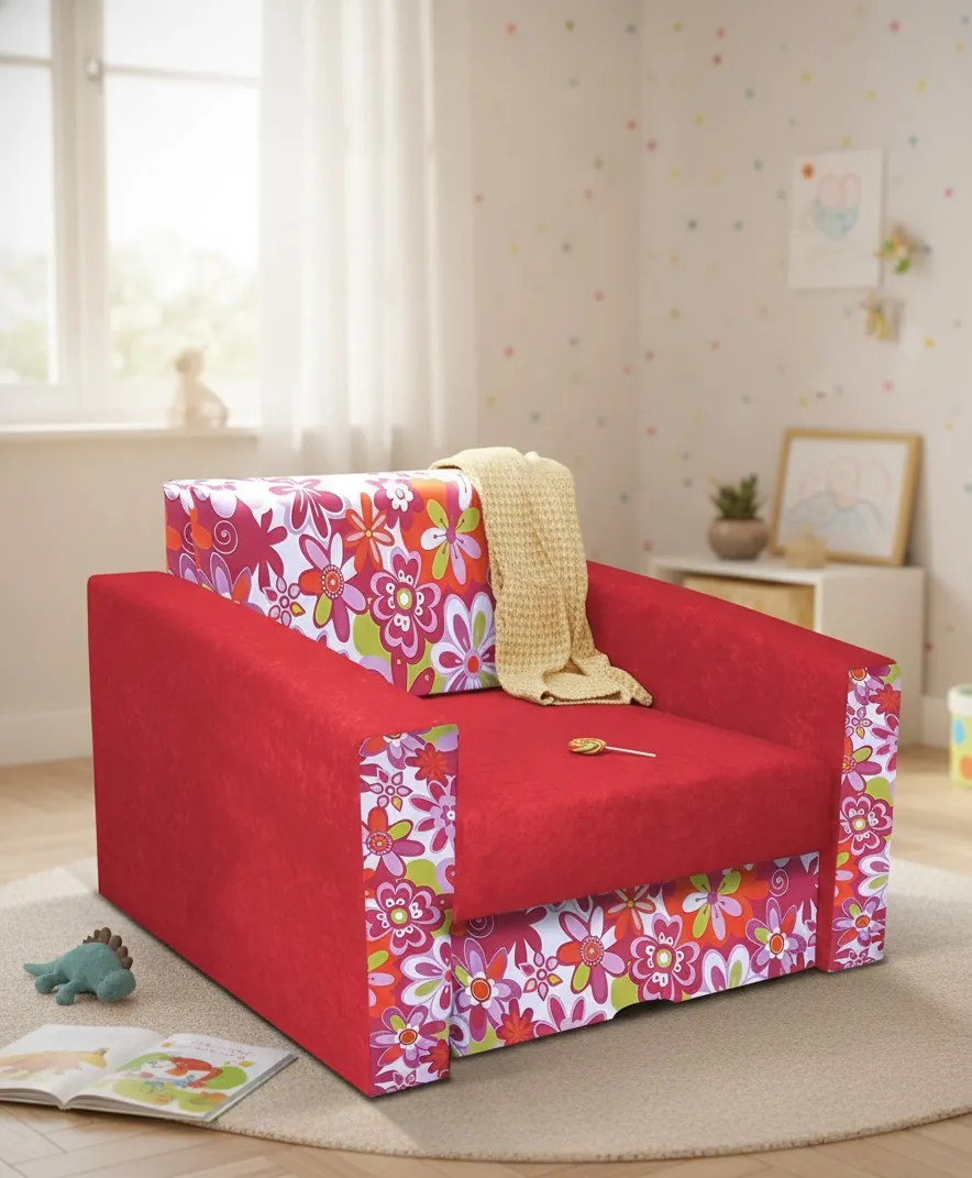 Czerwony fotel rozkładany z funkcją spania w kwiaty - Dorilla 11X