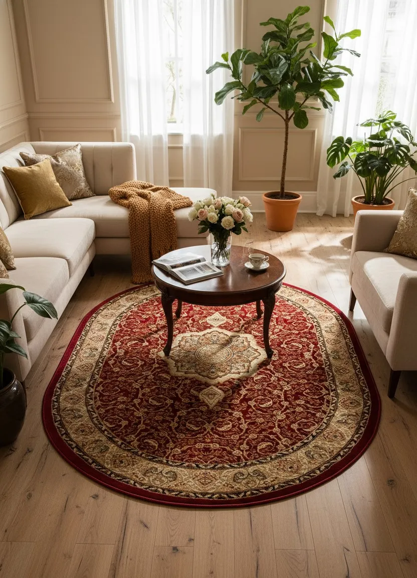 Czerwony owalny dywan w klasycznym stylu - Naira 3X