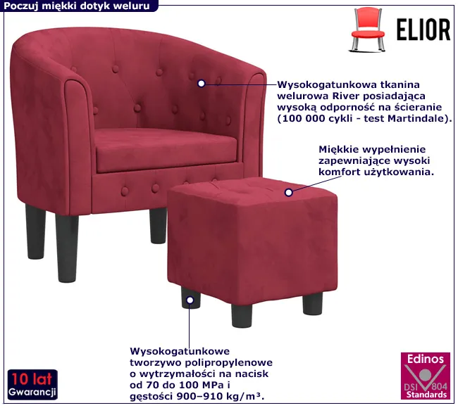 • Kolor: Czerwony. Zobacz także inne czerwone fotele w sklepie Edinos.pl. Stwórz swój praktyczny zestaw mebli.