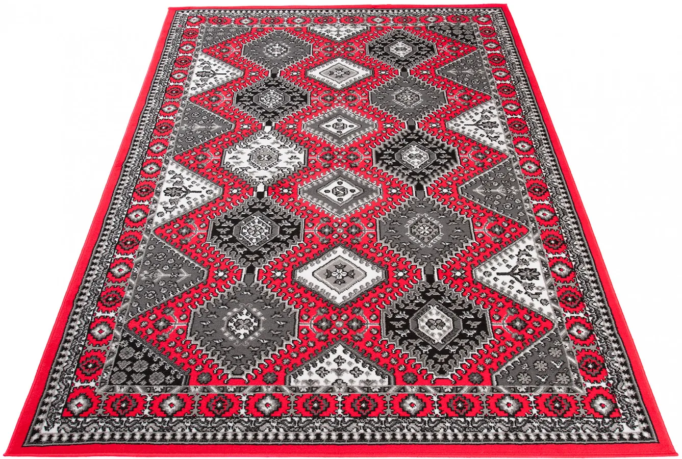 Czerwony prostokątny dywan do pokoju wzór Fercil 6X
