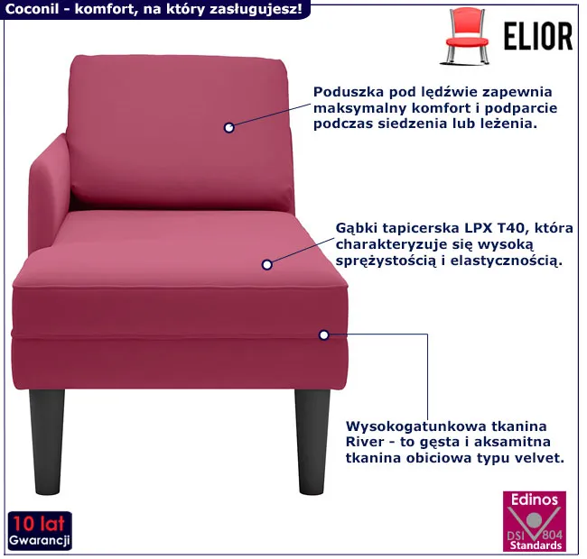 Dotyczy: Aksamitny różowy szezlong z poduszką - Frik