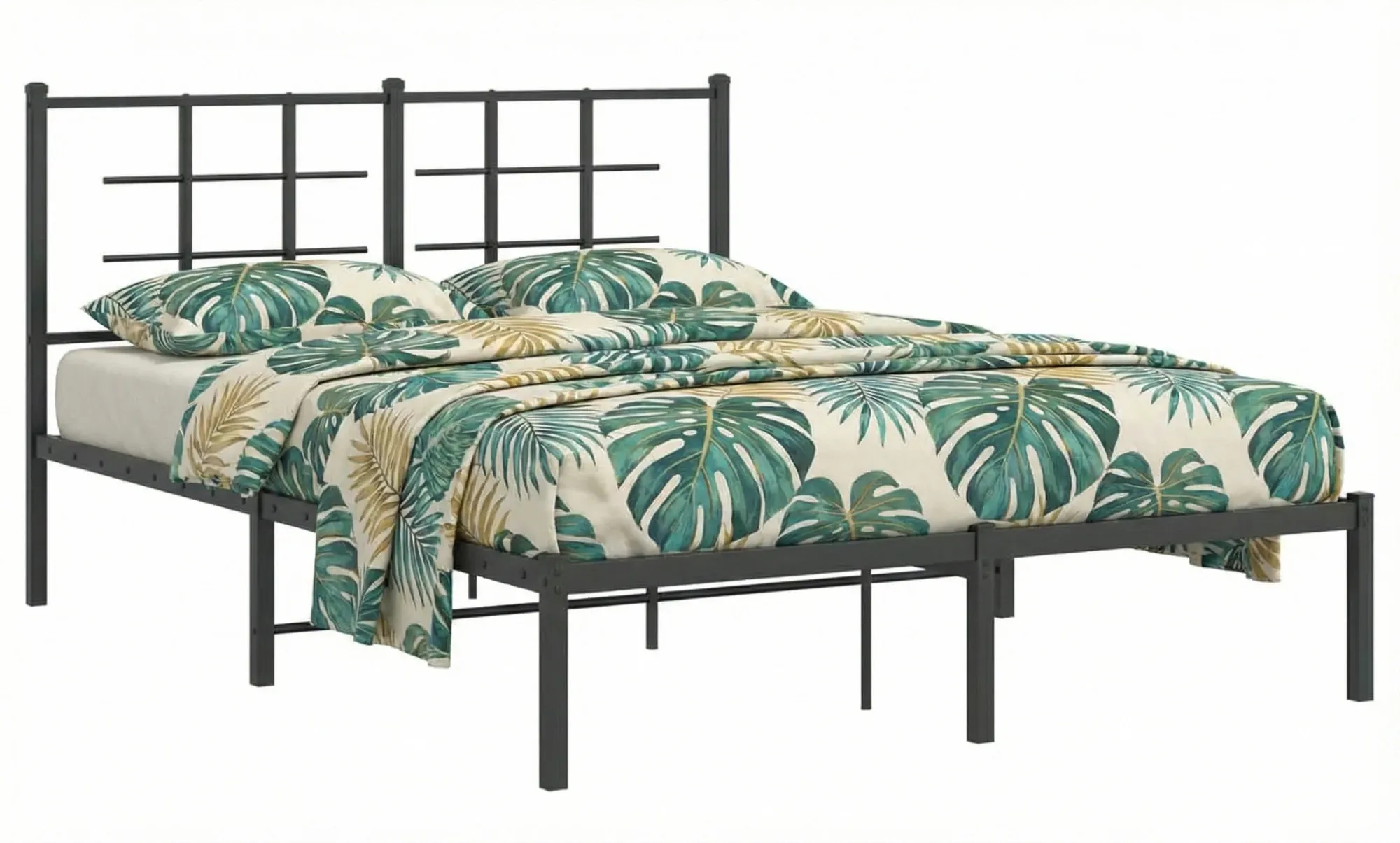 Czrane metalowe łóżko małżeńskie 140x200 cm - Laxo