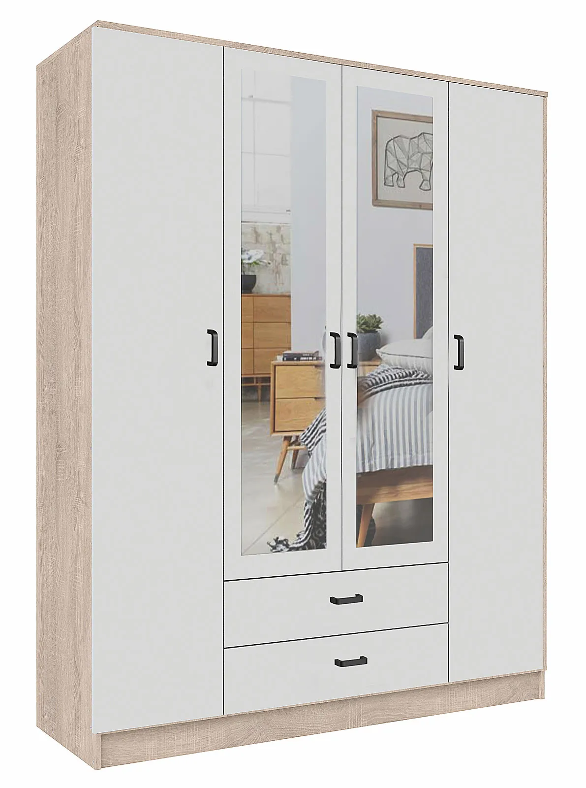 Czterodrzwiowa szafa z lustrem w kolorze dąb sonoma + biały - Orvexa