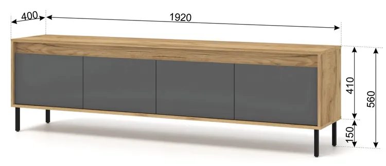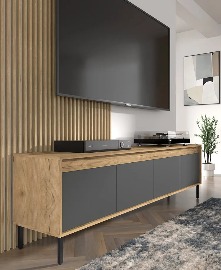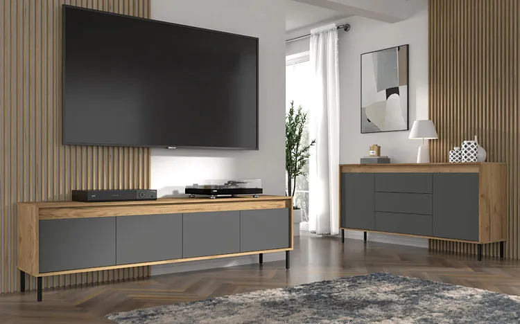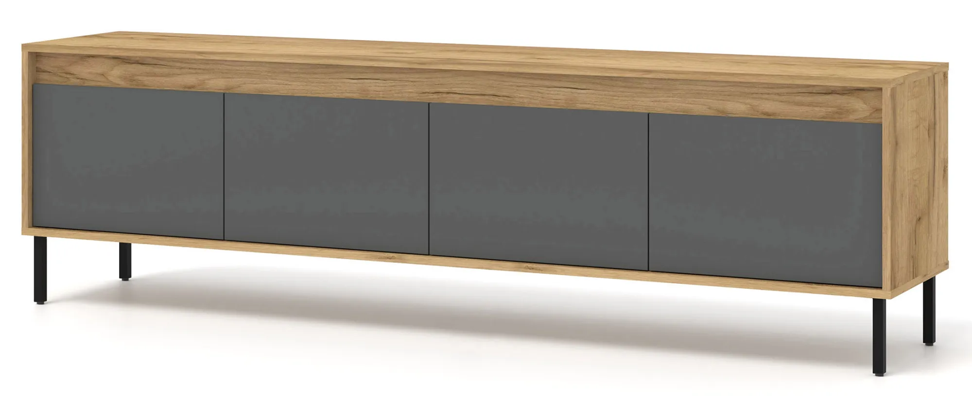 Czterodrzwiowa szafka rtv dąb craft + bazalt - Zurux 6X