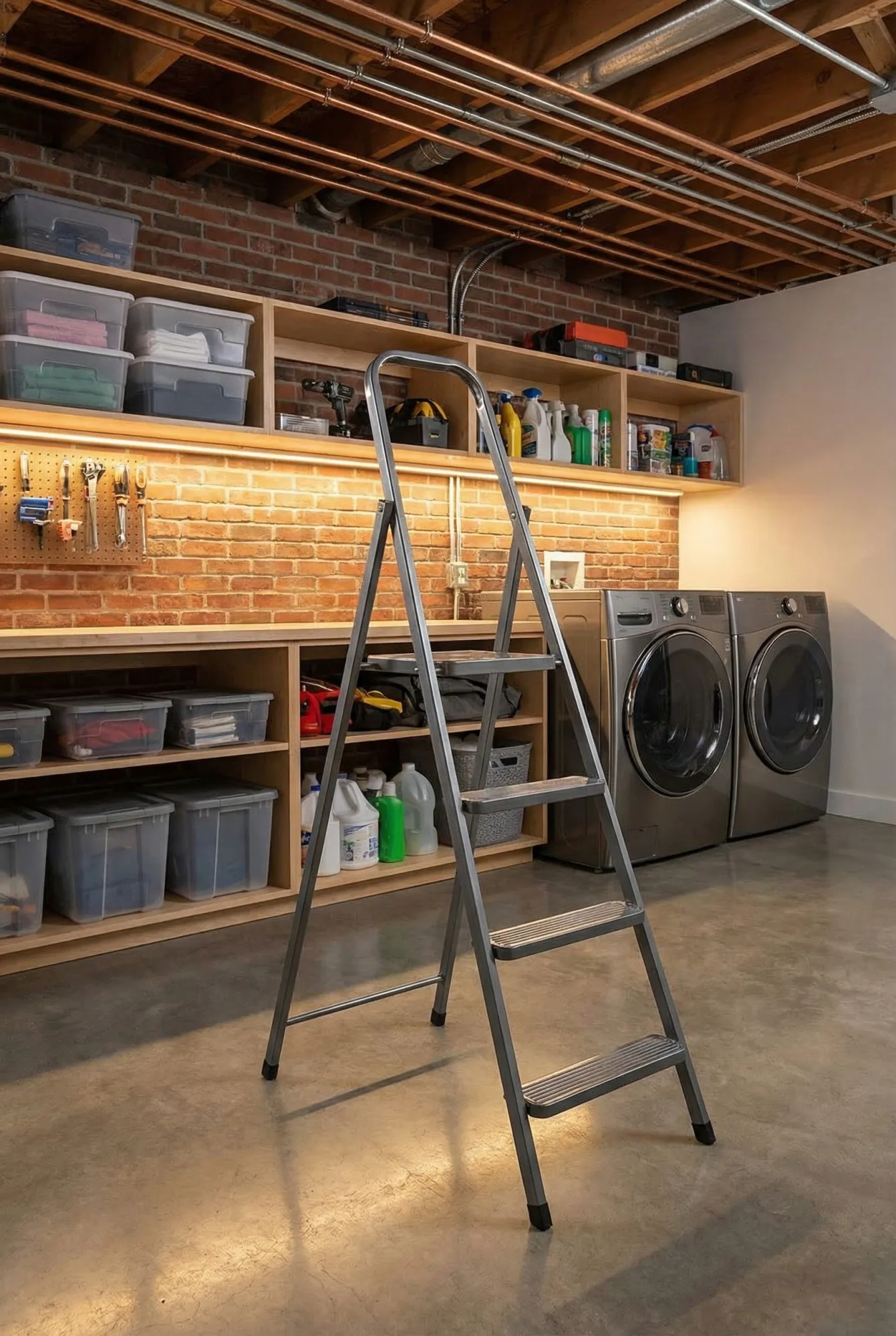 Aranżacja piwnicy ze stalową drabiną Korja