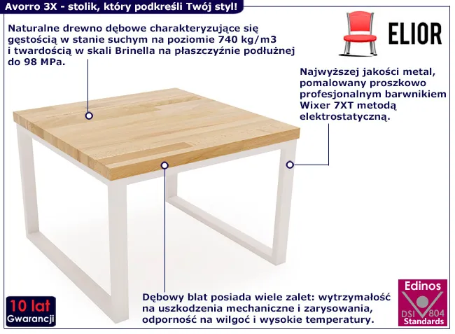 • Kolor: stelaż: biały, blat: naturalny dąb. Kliknij w link i sprawdź także inne drewniane stoliki kawowe w sklepie Edinos.pl. Stwórz swóją praktyczną przestrzeń.