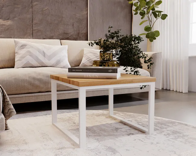 Dębowy stolik kawowy z białym metalowym stelażem - Delto 3X
