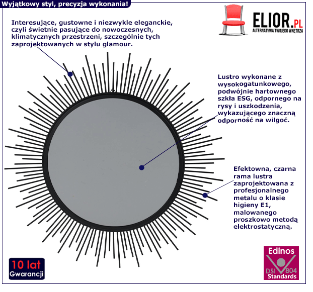 - Modna kolorystyka: czarne, srebrne. Kliknij w link i sprawdź także inne lustra w sklepie Edinos.pl. Stwórz swój praktyczny zestaw mebli.