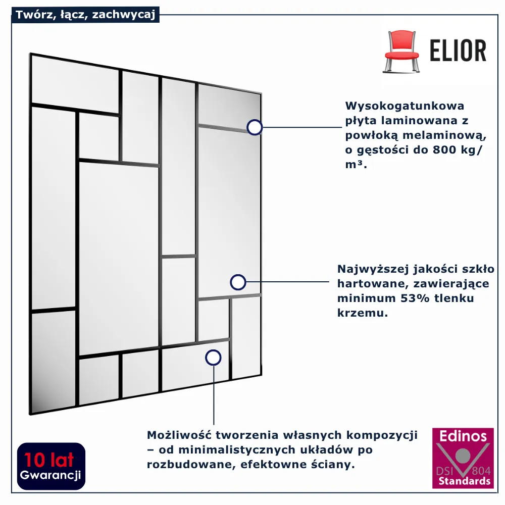 • możliwość tworzenia własnych kompozycji – od minimalistycznych układów po rozbudowane, efektowne ściany,