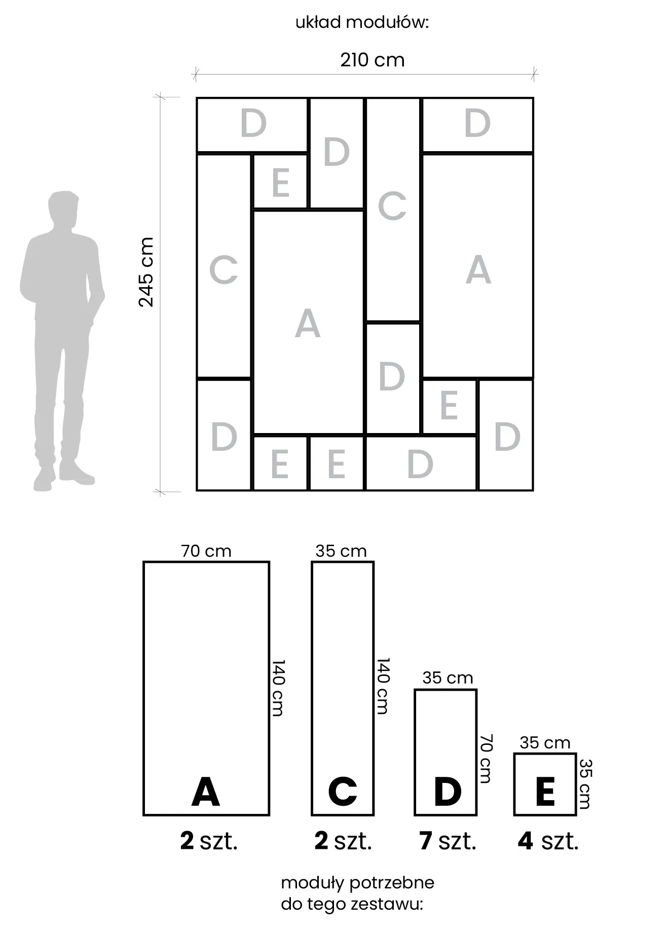 • szerokość: 210 cm, wysokość 245 cm.
