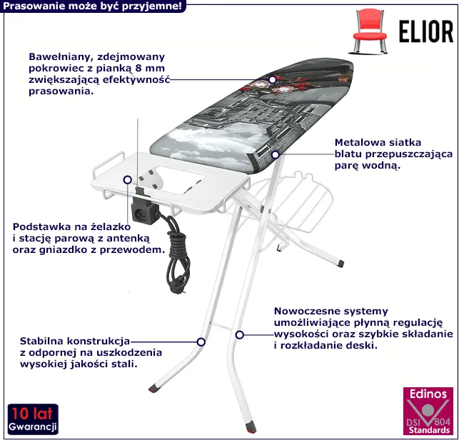 • bawełniany pokrowiec z 8 mm pianką ułatwiający prasowanie oraz łatwy do utrzymania w czystości