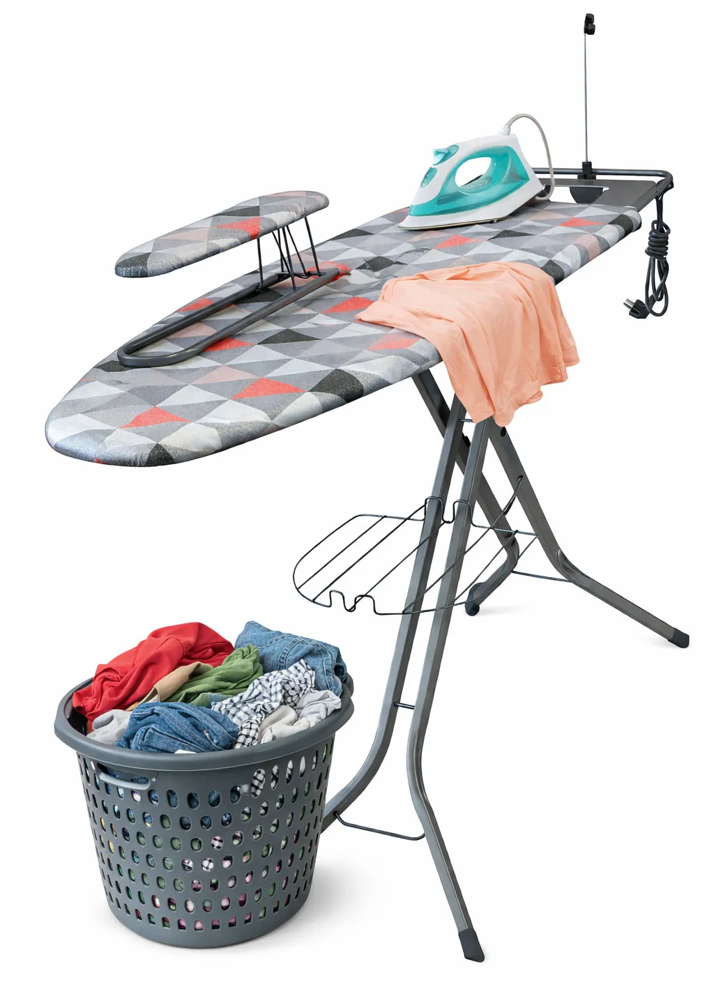 • praktyczny rękawnik i półka na bieliznę ułatwiają prasowanie mniejszych części ubrań i przechowywanie świeżo wyprasowanych rzeczy