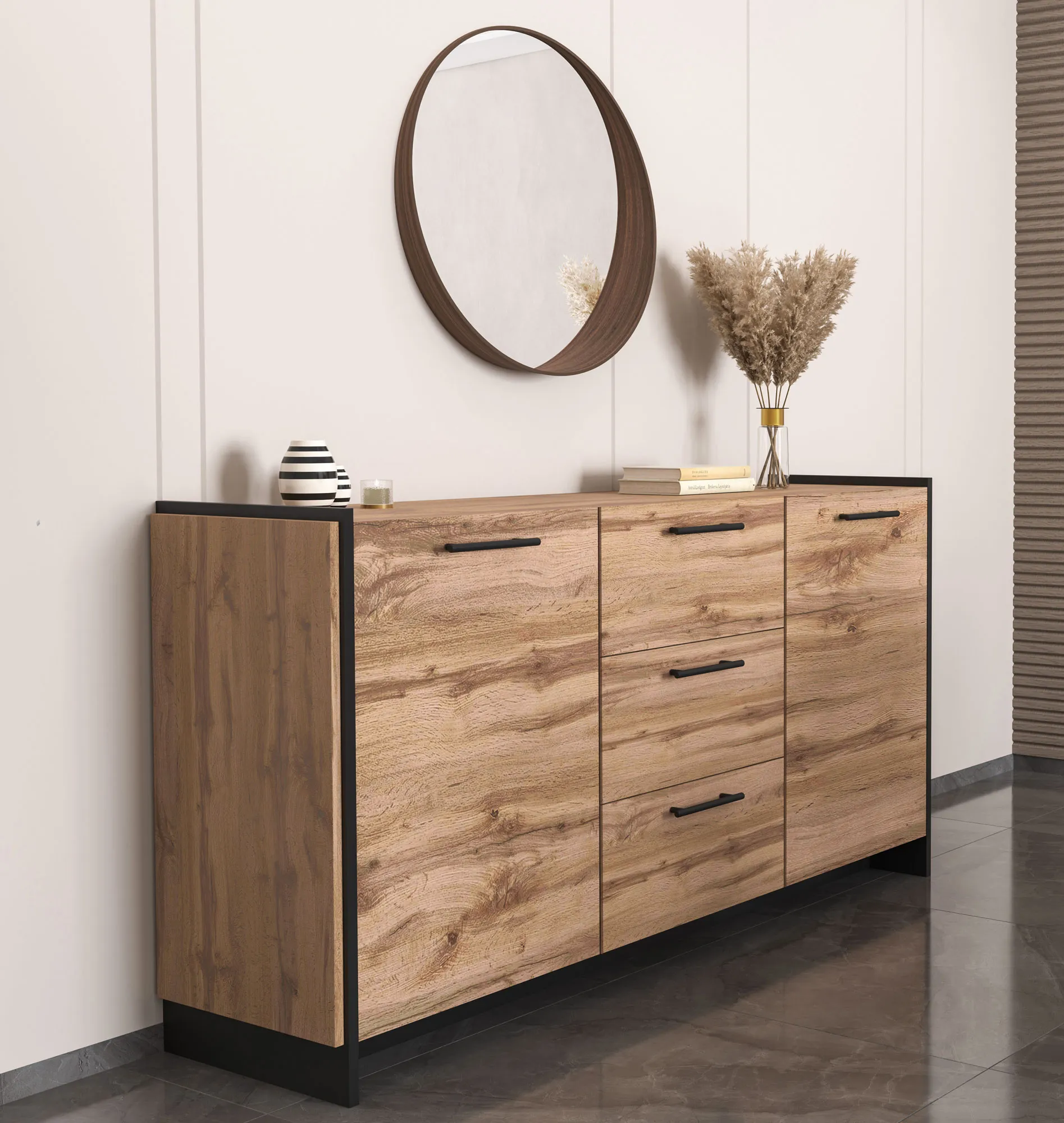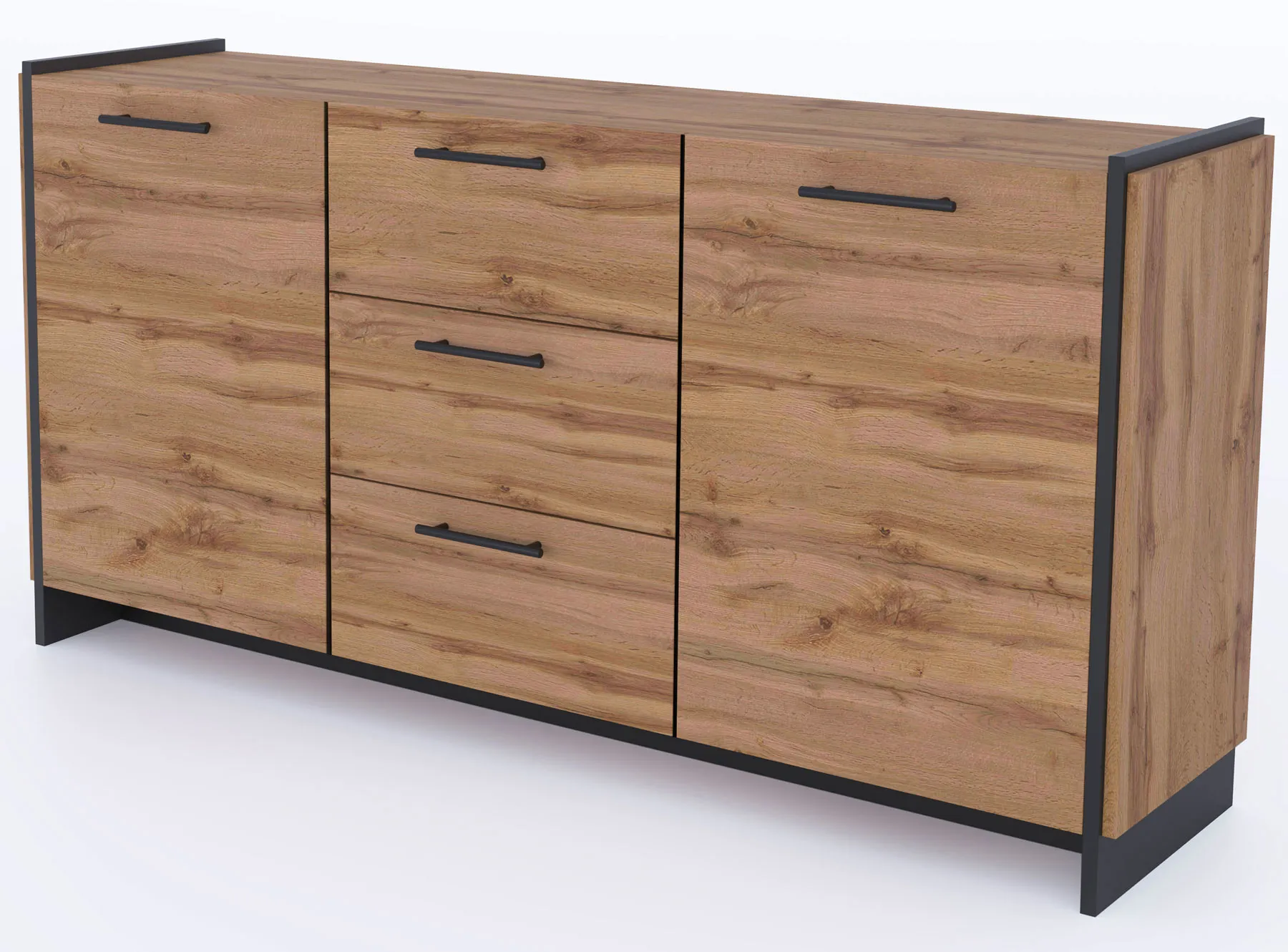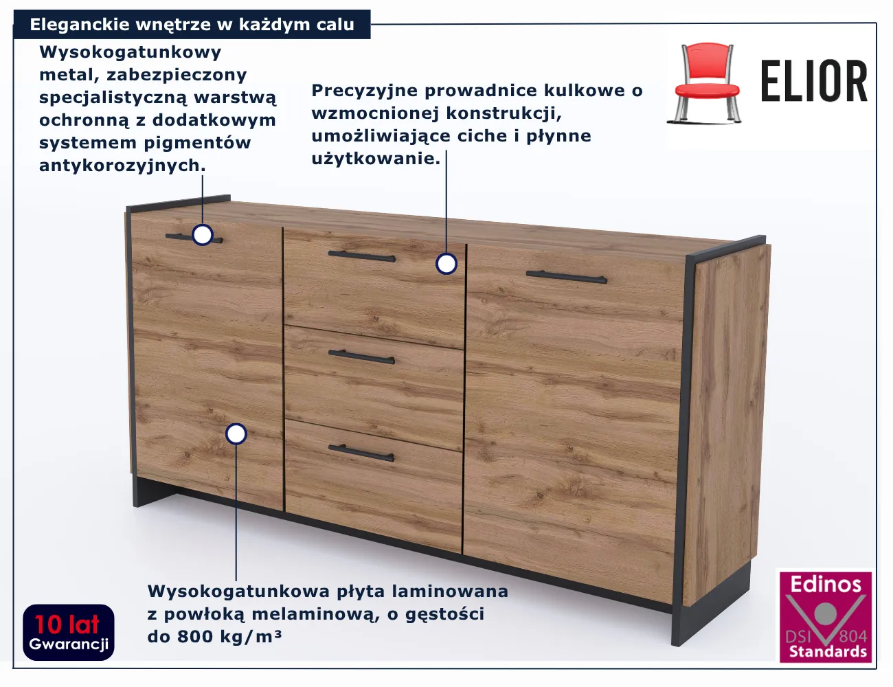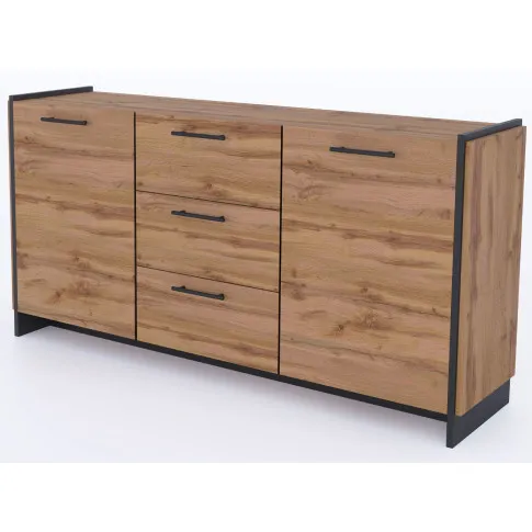 Długa komoda z 3 szufladami dąb wotan + czarny - Fellia 4X