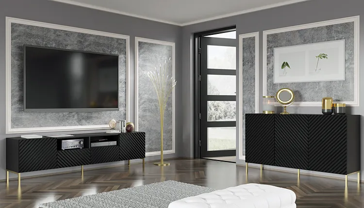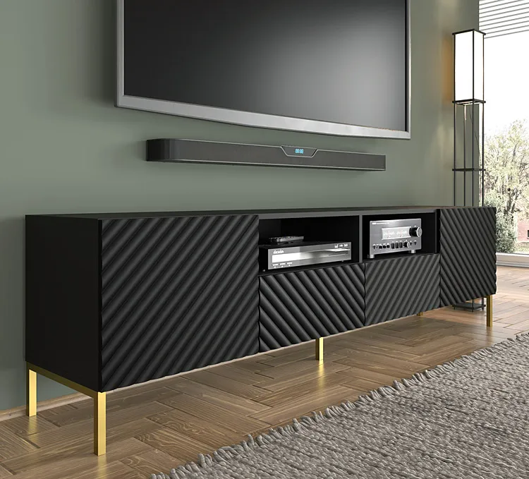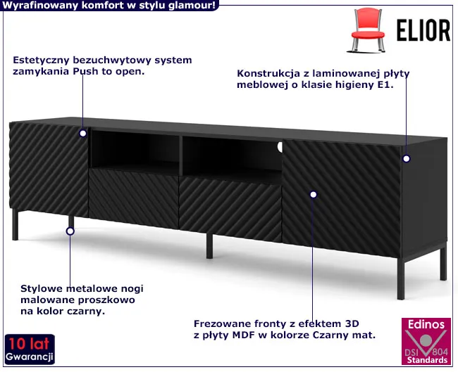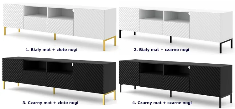 Dotyczy: Długa szafka rtv 200 cm biały mat + czarne nóżki - Resa 6X