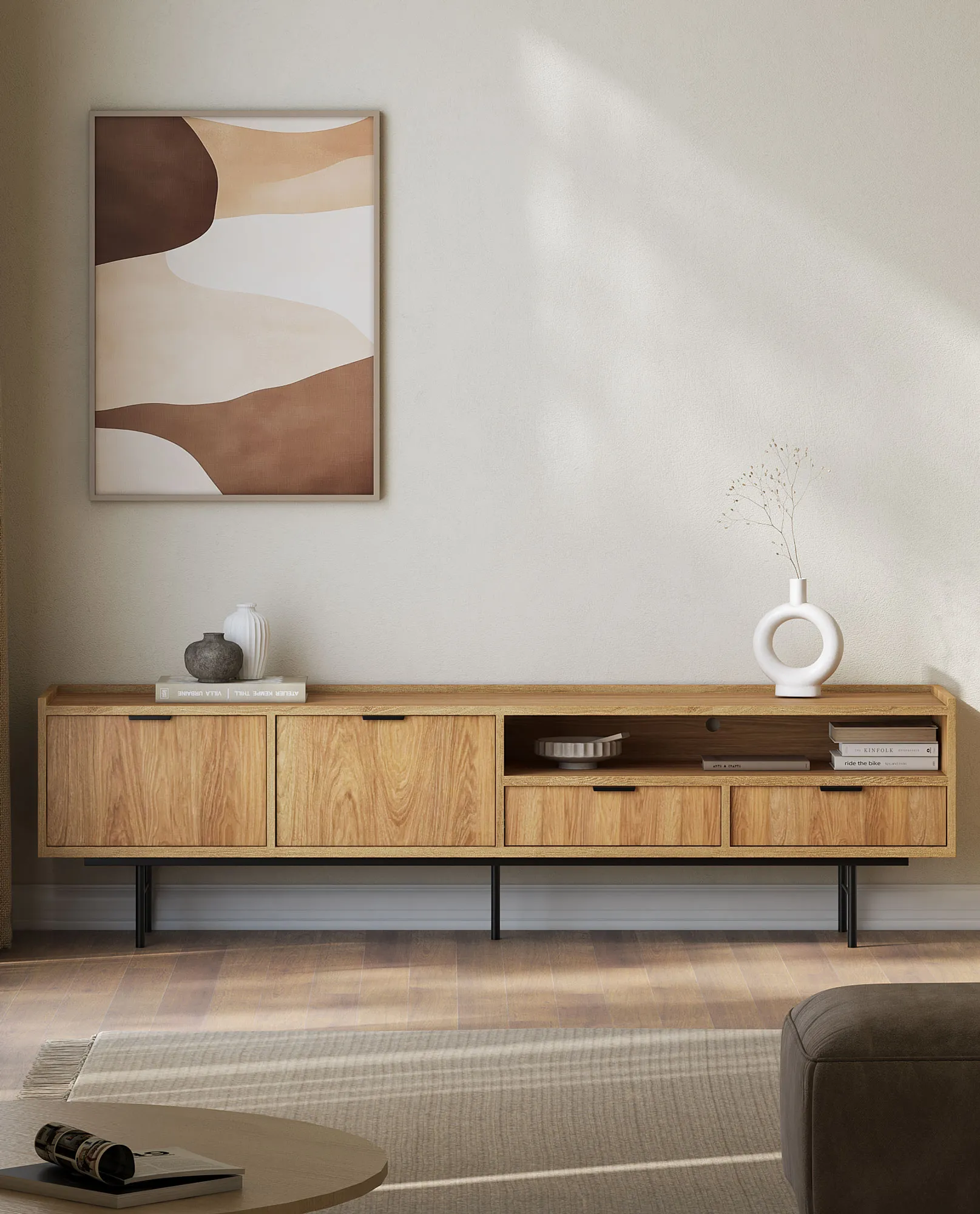 Aranżacja z szafką pod TV Herioz 4X hikora naturalna