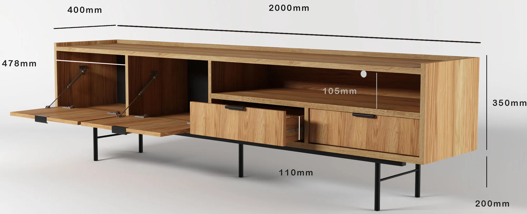 • otwarta wnęka na sprzęt RTV i akcesoria
