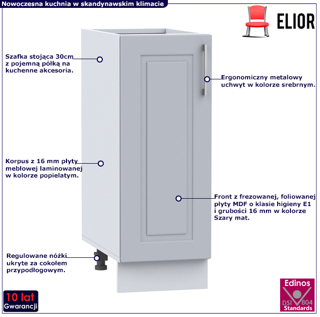 - Modny kolor: korpus: Jasny popiel, front: Szary mat.